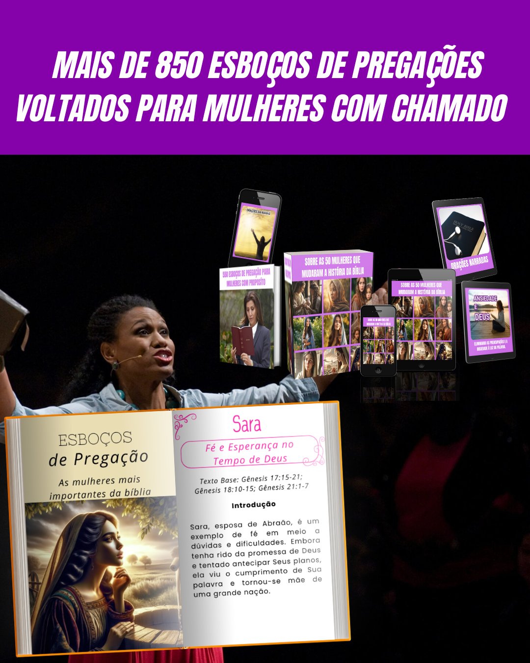 Descubra o poder da pregação com este incrível material que reúne 850 esboços exclusivos, especialmente elaborados para mulheres que sentem o chamado de Deus em suas vidas.